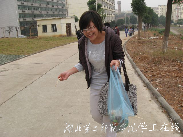 我们一只手拿着筷子,一只手提着塑料袋,不时弯腰不时起身,走走停停,从外国语学院楼后的草坪到图书馆侧面,沿途无不留下我们的身影,无不回荡着我们的笑声。但我能感受到打探的眼神和不屑的笑脸,也许他们是在笑我们傻,当时我很想明确的告诉他们,我们并不卑微,我们很自豪,我们很高兴能放下那自以为是的自尊,捡起一片垃圾为学校献上小小的祝福。相比于那些等着机会来敲门的人而言,我更佩服那些于平凡中诞生的伟大,从身边的小事做起吧!期待大家的参与!