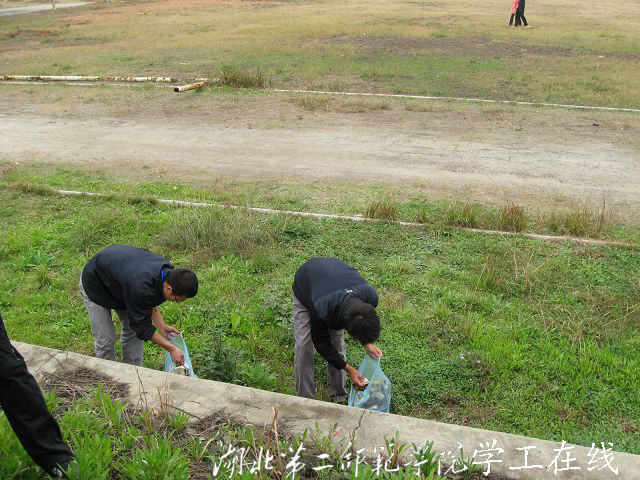 活动地点集中在三号教学楼后面及图书馆侧面的草坪,共有党委学工部学生工作者五十余名同学参与清除垃圾的活动。