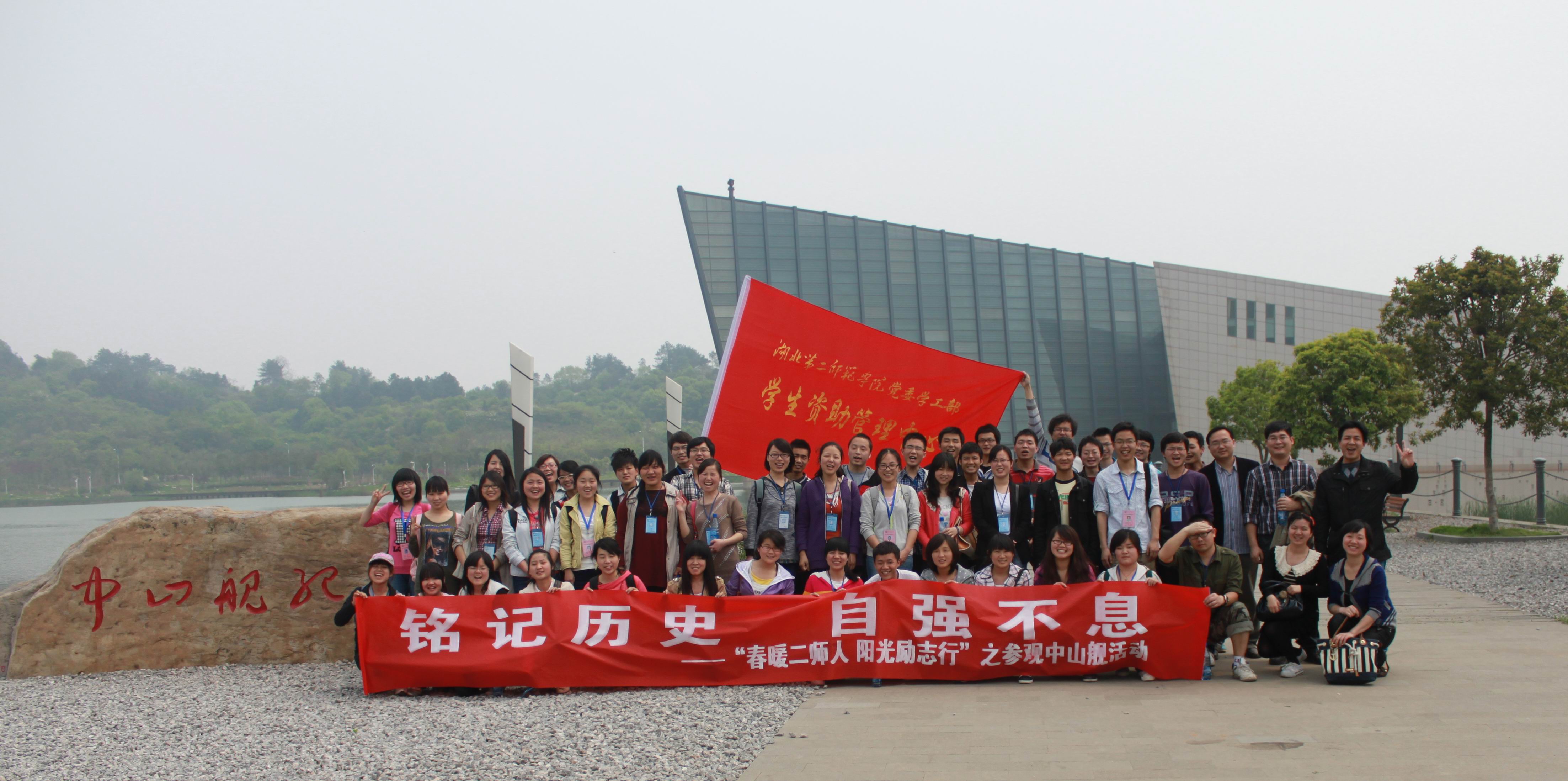 (本网讯 记者 舒乾贵)为加强我校对特殊学生群体的关怀力度,让家庭经济困难学生了解到祖国的历史,增强爱国热情。4月19日,党委学工部勤工助学中心举办了主题为“铭记历史 自强不息”特困学生代表赴中山舰参观的主题活动。湖北第二师范学院党委副书记许邦官,党委学工部部长方喻出席了本次活动,各院系辅导员代表,贫困学生、勤工助学中心工作人员52人参加了本次活动。许邦官副院长为此次活动举行授旗仪式,方部长做了重要讲话,他希望同学们能够通过此次活动了解中山舰的故事并铭记名舰背后的历史,丰富阅历,增强历史责任感,树立自强不息的意识,努力学习,健康快乐成长。