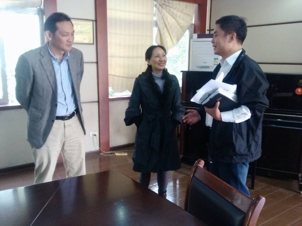 (学工部部长刘儒国和艺术学院邹丹书记、张绍明副书记交谈)