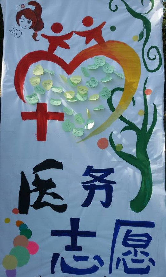 记者发现在足球场上的一个角落,志愿者协会的展板上的“心”被无数写满祝福语的便利贴所填满。据了解,该展板本没有设计这一环节,只是单纯的宣传而已,之后被一些有爱的同学发现利用,以此来表达对参赛同学的祝福。其中一张这样写道:“运动员、裁判员都辛苦了,么么哒!”此外,环保协会以环保,文明为宗旨,足球场上举行运动会寄语。环保协会副会长刘沅说:"我们希望通过这次活动来提倡同学们,在运动会期间要环保,要讲文明,多走一步,也能使文明,环保得到传递"。