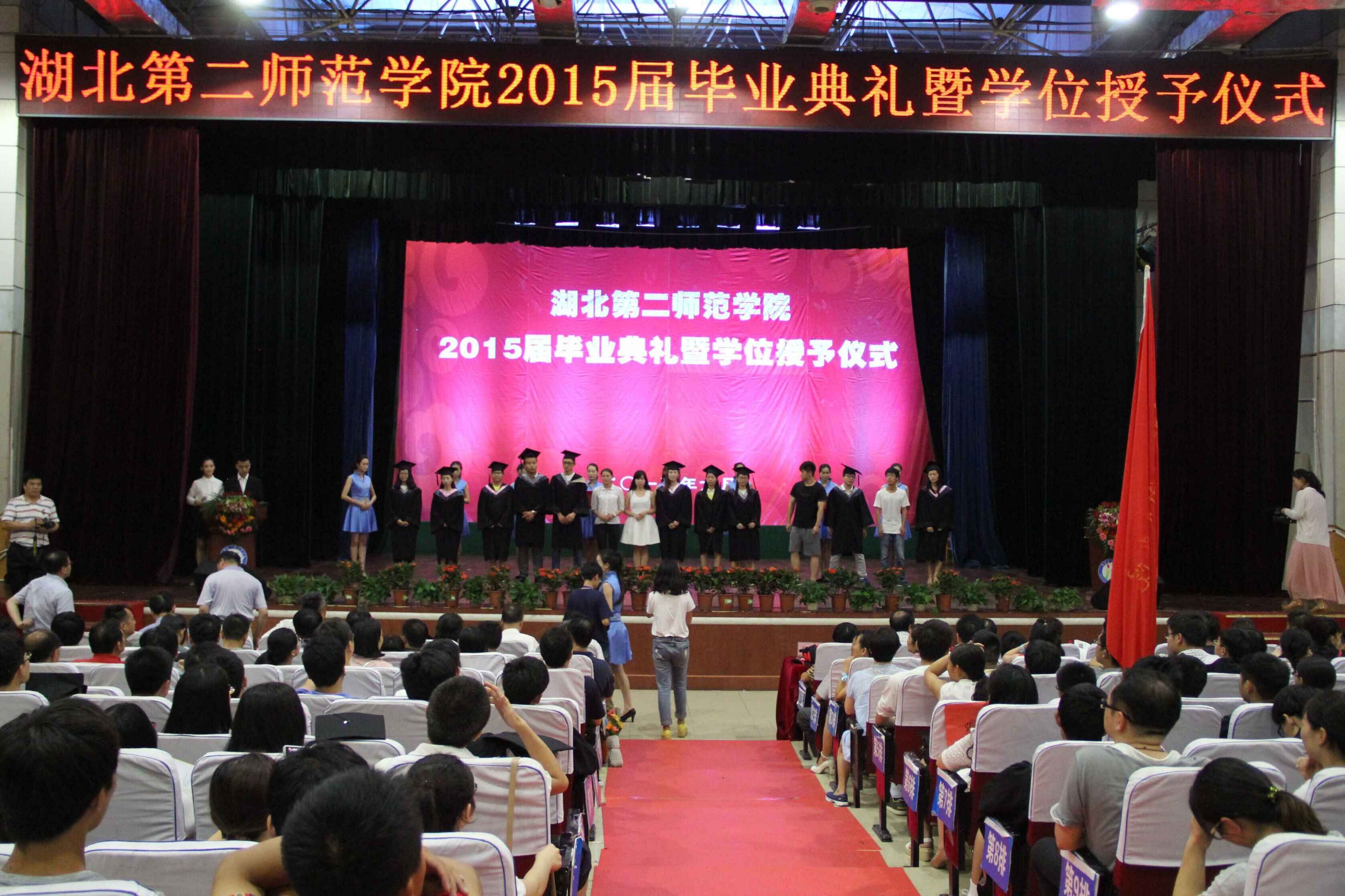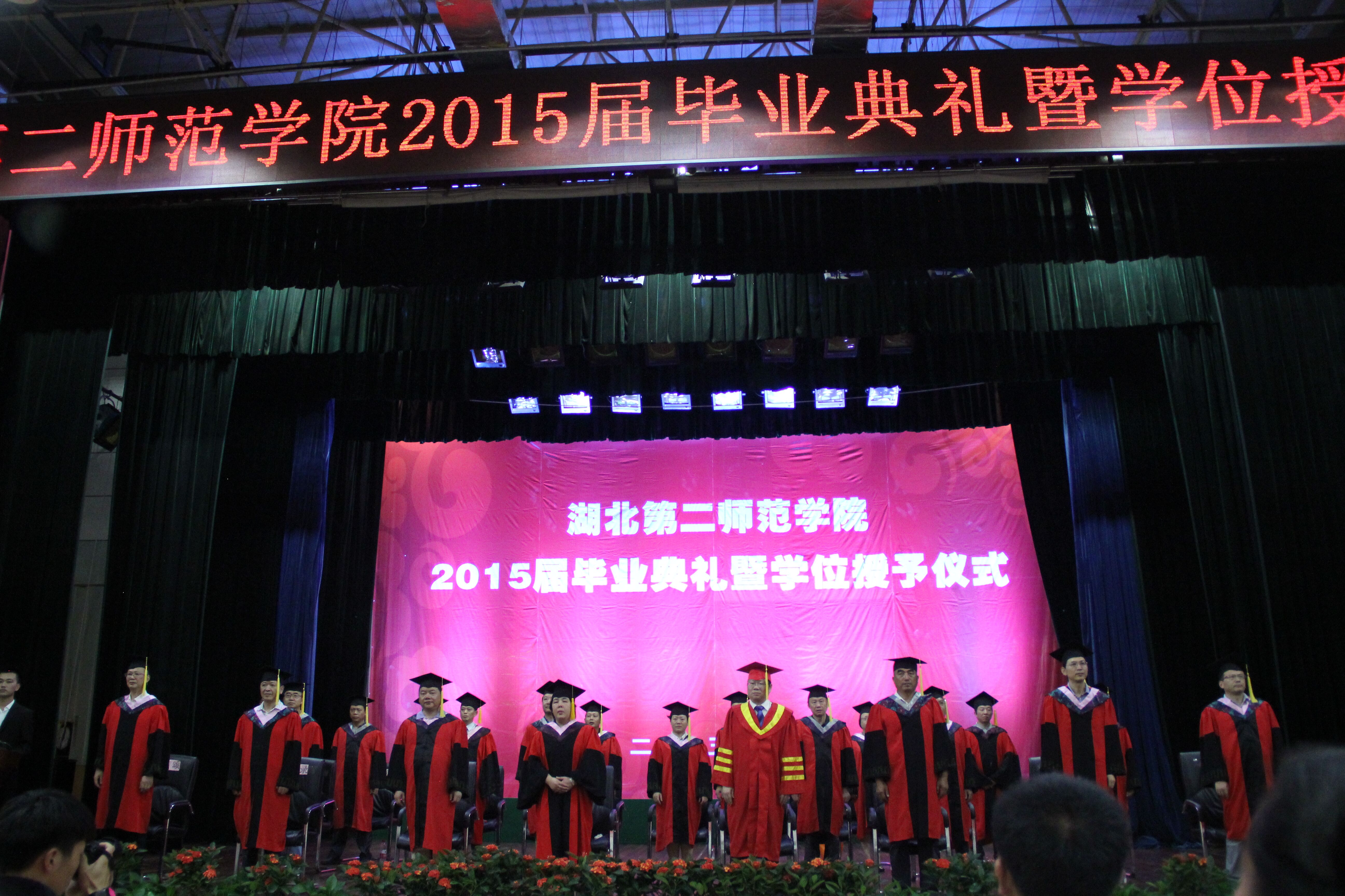 大会宣读了《湖北第二师范学院关于授予2105届普通毕业生学士学位的决定》。校领导为来自各个学院的256名毕业生代表颁发学士学位证书,并为他们拨流苏。礼成之后,全体毕业生代表鞠躬行谢师礼,学生代表上台为领导和老师献花。