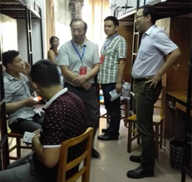 在走访过程中,曾国平不时提醒新生注意气温变化、随时保持寝室整洁卫生、照顾好身体并耐心指导他们小心防骗、拒绝推销、学会保护自己的财产与人身安全。在关心学生的同时,领导同时关注着宿舍的环境,仔细检查寝室楼内的各个角落与墙面,并特别关注了寝室配电设施的规范管理与寝室阳台的采光问题。