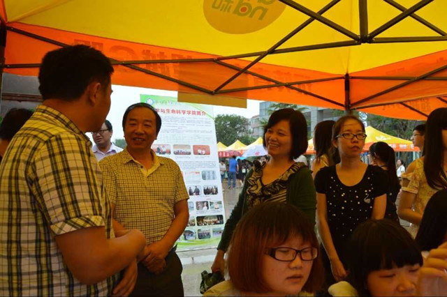 本网讯(通讯员 刘文莉)9月,又是一年迎新季,化学与生命科学学院2015年迎新工作在湖北第二师范学院图书馆全面展开。院常务副院长曾国平、党总支副书记严莉萍、学工办主任余建国以及各个辅导员均亲临现场指导工作。