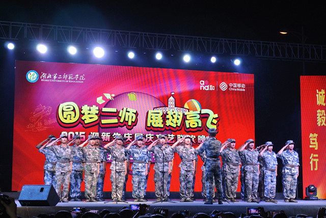 本网讯(青媒记者任文洋 段晗)9月23日下午7时,2015级新生迎新晚会在我校西区篮球场隆重举行。学工部部长刘儒国,副部长施旭、张敏,军官政委,各学院学工办主任及带队老师出席了此次迎新晚会。