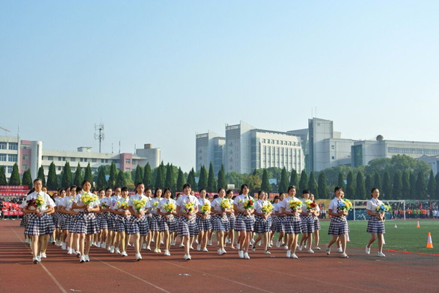 “We are the winner, we are the leader”的口号响彻全场,这是来自外国语学院的方阵;管理学院学子们举着气球拱桥,雄赳赳气昂昂的走过全场。来自体育学院的方阵高举数个奖杯,好像在告诉大家“这是我们的主场”。继续教育学院的方阵青春活力,不同于其他方阵整齐的走过,他们的方阵走到主席台,瞬间变换了队形,以啦啦队形式的表现方法,响亮的口号,让在场的人眼前一亮,很好的诠释了“青春无畏,逐梦扬威,继教健儿,奋勇直追”这个口号。