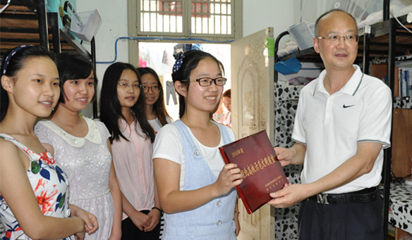 本网讯(学通社记者 黄潘婷)6月24日下午,副校长黄颂在霜枫园九栋13级机电技术教育专业的415寝室与寸草园十栋14级生物科学(技术方向)专业的526寝室为2015年度“湖北高校示范文明寝室”挂牌。