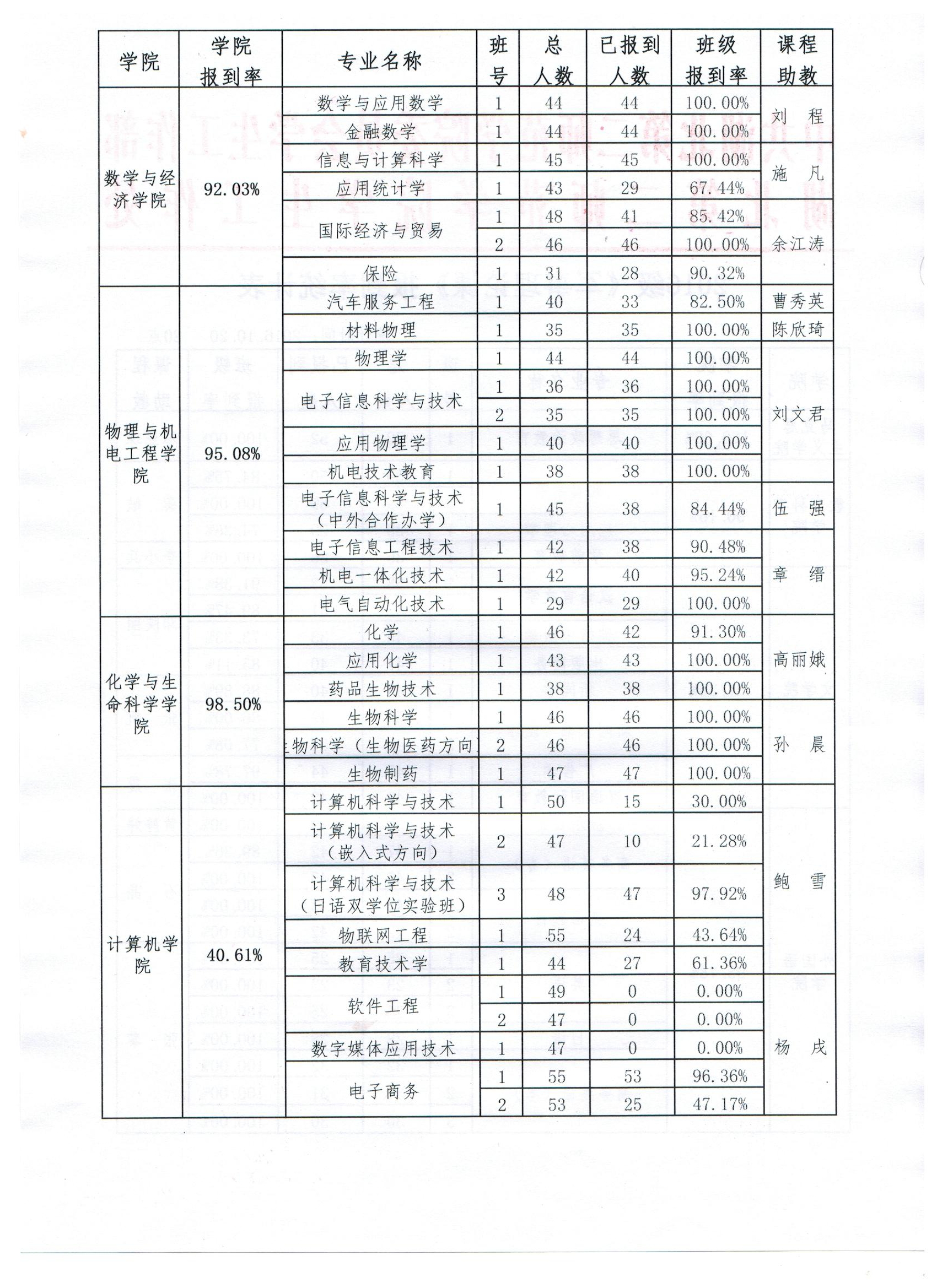 2016级《军事理论课》报到率统计表(2016.10.20)