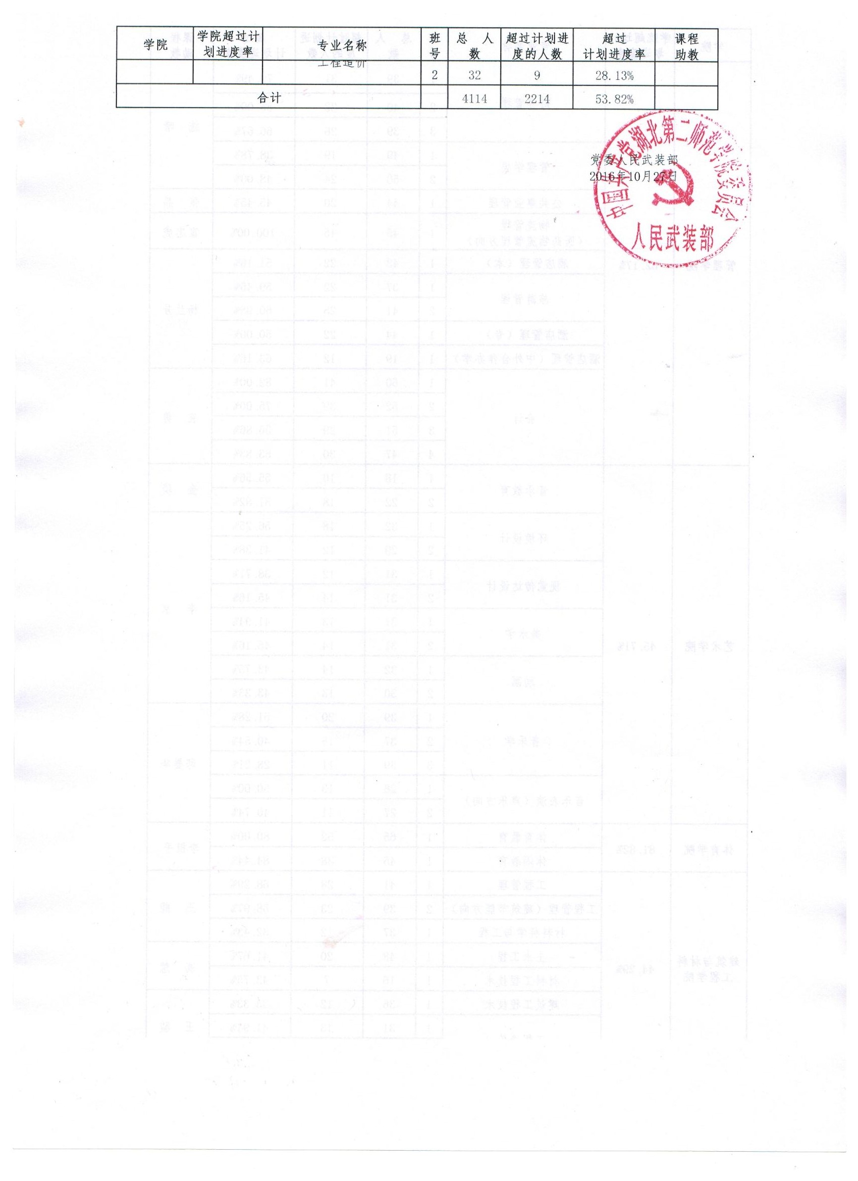 2016级《军事理论课》学习进度统计表(2016.10.27)