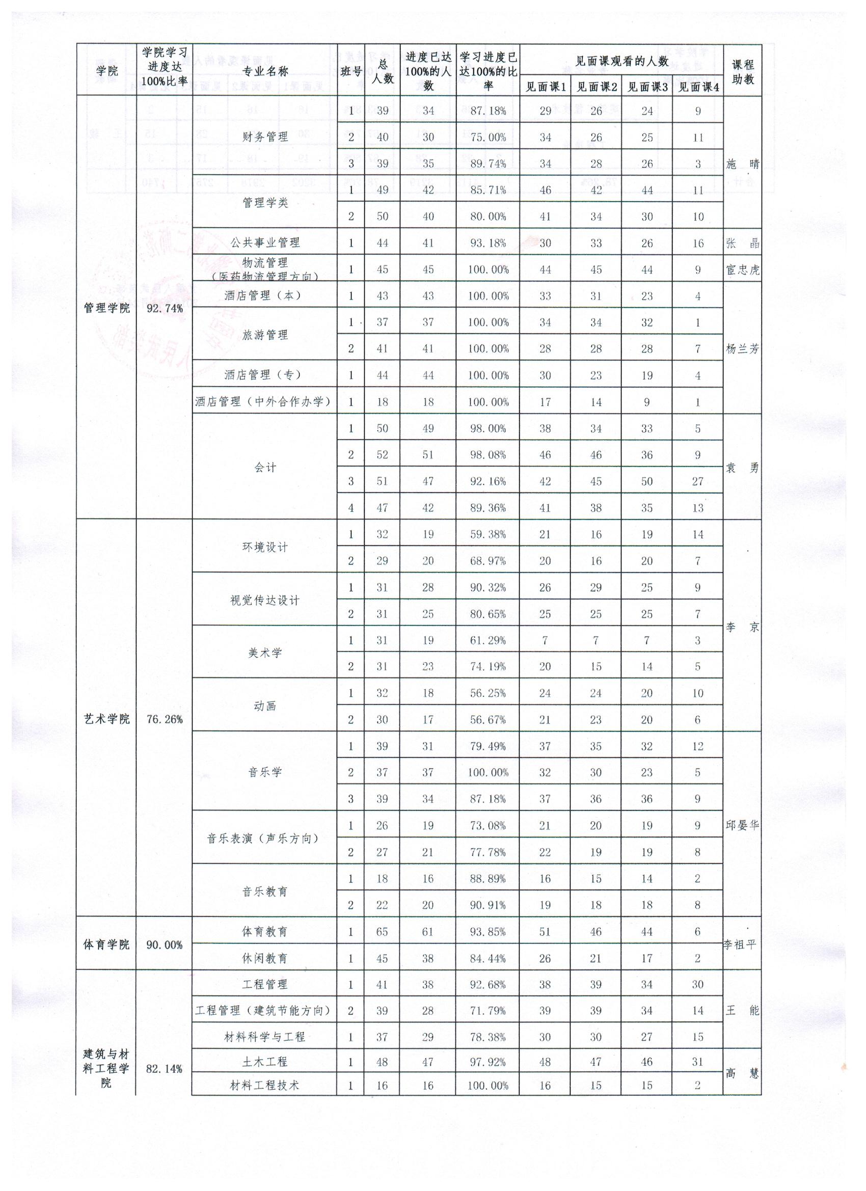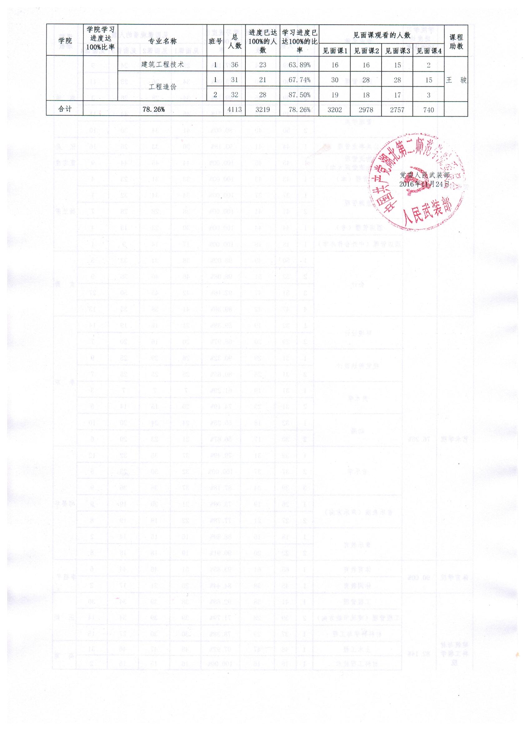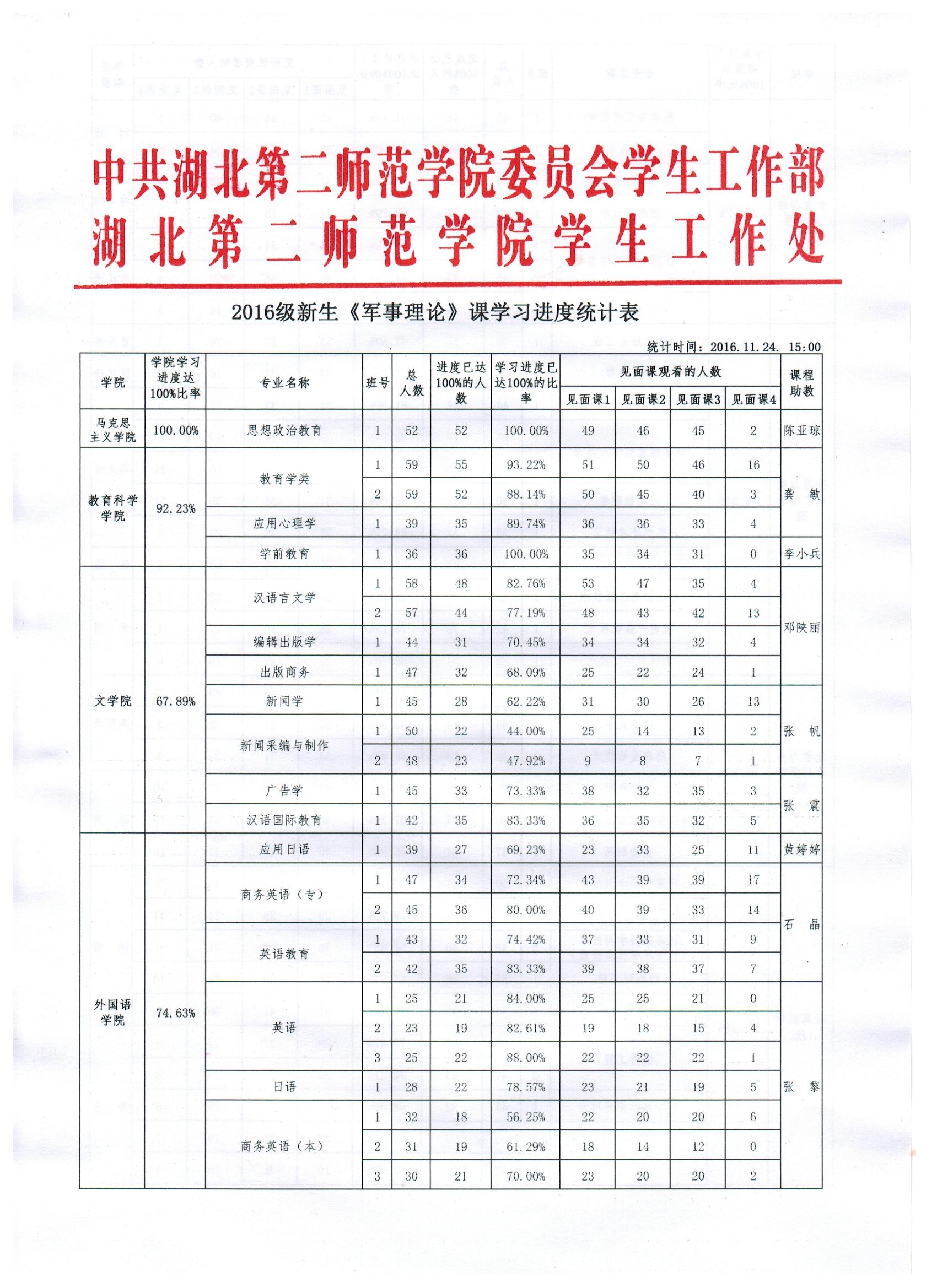2016级《军事理论课》学习进度统计表(2016.11.24)