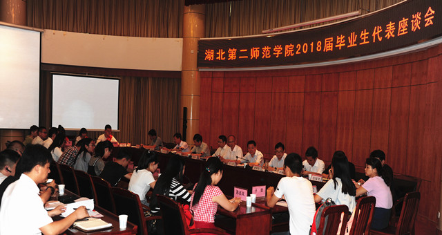 本网讯(见习记者肖贤志)6月13日下午,2018届毕业生代表座谈会在行政楼一号会议室召开。校长胡仲军出席,相关部门负责人、优秀毕业生代表等参加。副校长黄颂主持会议。