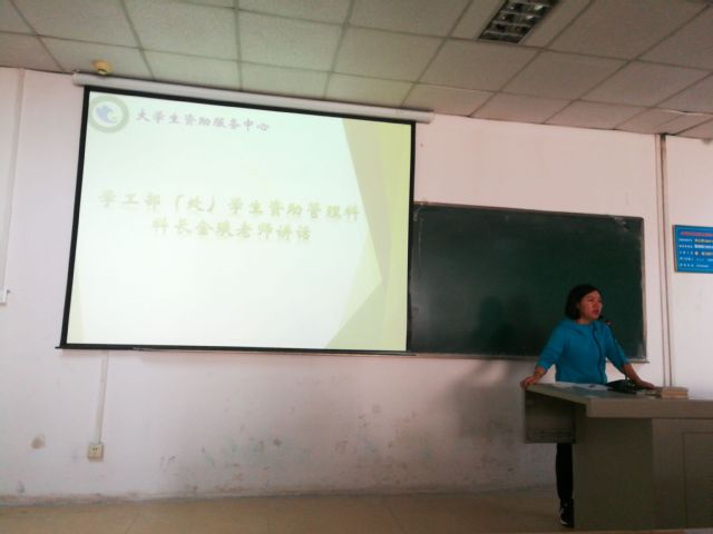 会议最后,学工部大学生资助服务中心主任张静总结陈词,对积极踊跃参加的志愿者们表示衷心地感谢,并希望10月25日的家庭经济困难学生认定材料复核工作能够顺利完成。