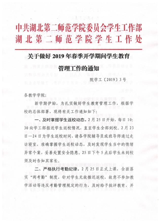 关于做好2019年春季开学期间学生教育管理工作的通知