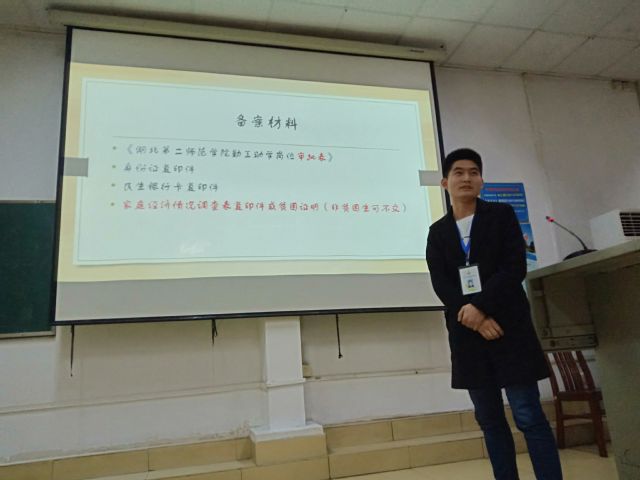 接下来,由大学生资助服务中心主任蒲亚雯为大家解读《湖北第二师范学院学生勤工助学管理办法》文件精神。着重介绍了勤工助学酬金标准及加强日常管理、工作考核、年度评优表彰等工作。随后,来自文学院的勤工助学代表何淼同学发言表示“能力越大,责任越大;既然肩负起‘勤工助理’这一光荣使命,更应该展现出优秀学子的励志风采,提升双重精神品质,为广大学生树立榜样,砥砺奋进。”并分享了自己在工作中的感人瞬间。最后,大学生资助服务中心勤工助学组组长师冬虎为大家解读录用备案材料的存档问题、并颁发《勤工助理工作手册》。
