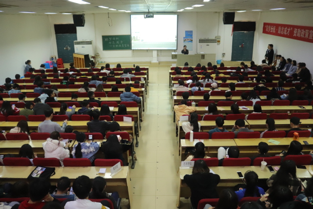 本网讯(通讯员 全春晓 蒲亚雯)4月11日下午两点,我校大学生资助服务中心在三号报告厅举行了 “助梦扬帆·励志成才”资助政策宣传大会。本次资助政策宣传大会旨在帮助大学生深入了解国家的资助政策,做资助政策的宣传大使,进一步树立感恩教育理念,促进资助育人工作顺利开展。参加本次会议的有学工部资助管理中心科长金琰,校、院两级资助中心干部以及各班资助知识宣传员。近350人参加。
