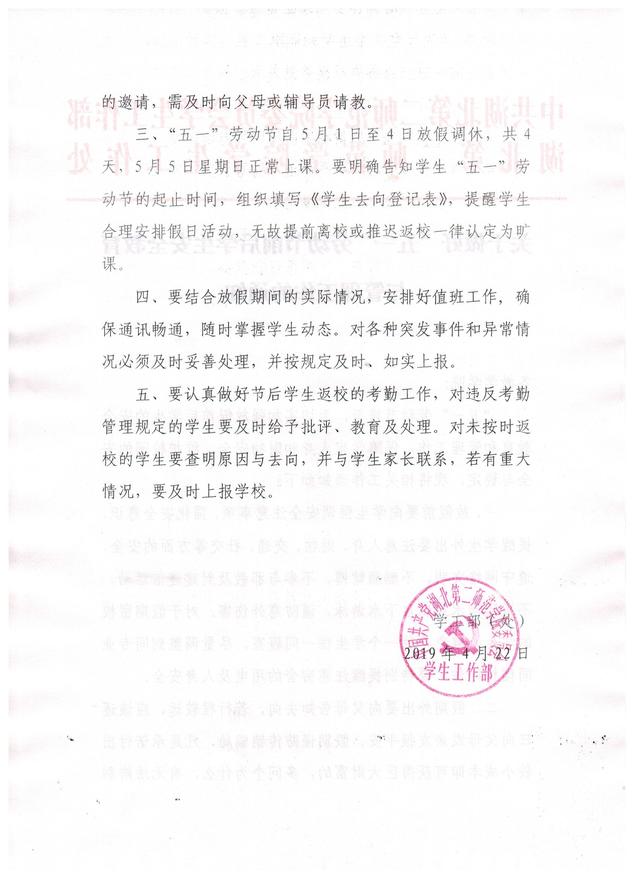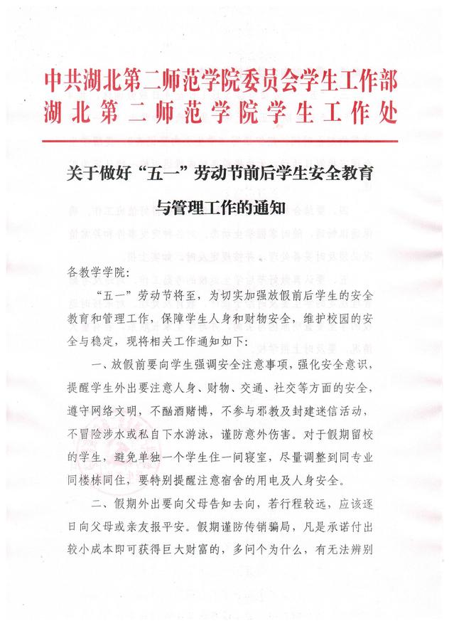 关于做好“五一”劳动节前后学生安全教育与管理工作的通知