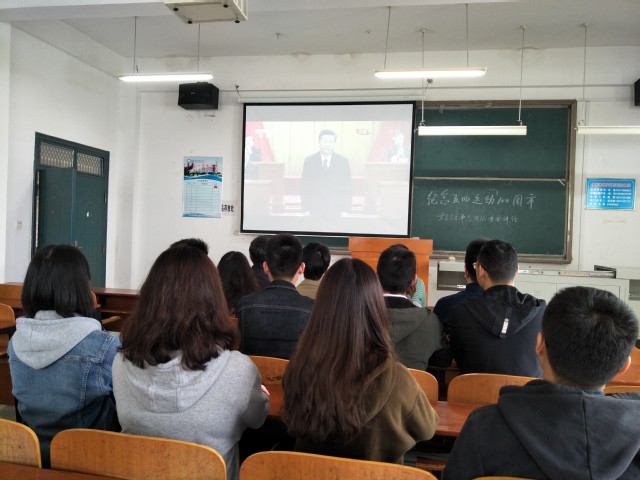 本网讯(通讯员 王骏) 4月30日上午,建筑与材料工程学院党总支在6号实验楼301教室组织教师、学生骨干代表集中观看了在北京人民大会堂隆重召开的“纪念五四运动100周年大会”盛况直播。学院领导张赟、邢宽广出席观看活动。
