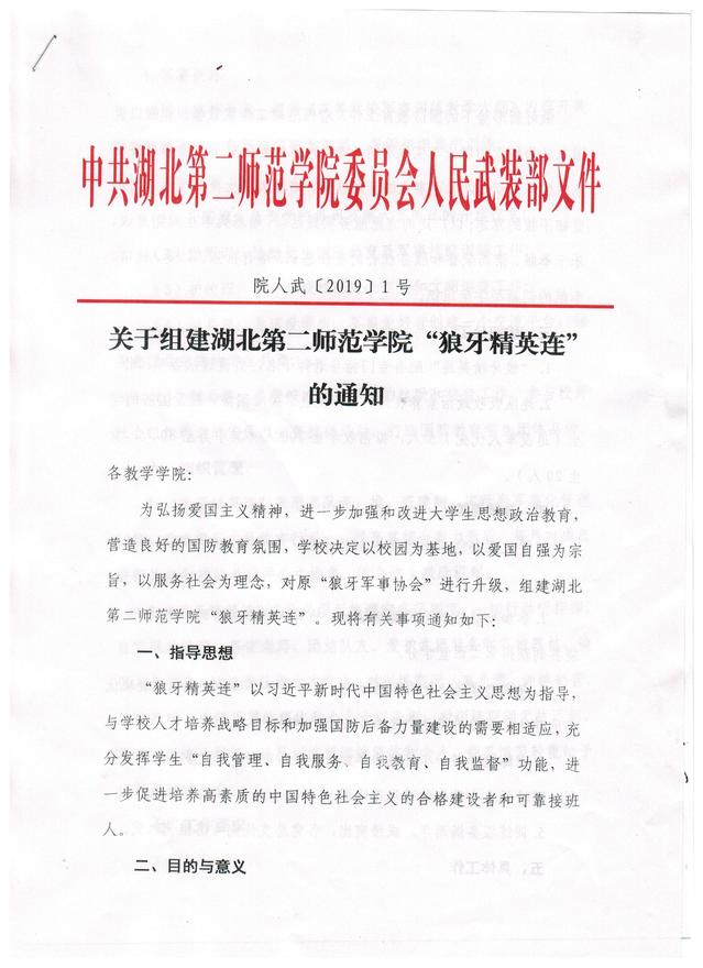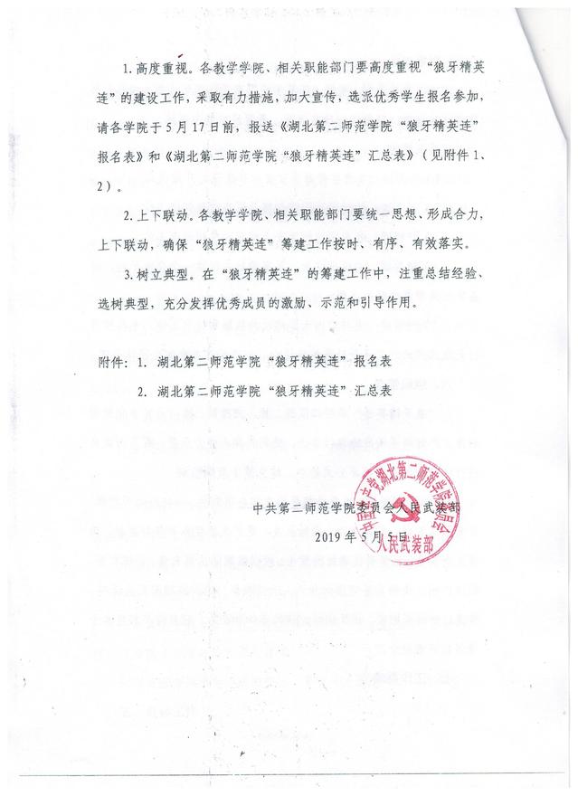 关于组建湖北第二师范学院“狼牙精英连”的通知
