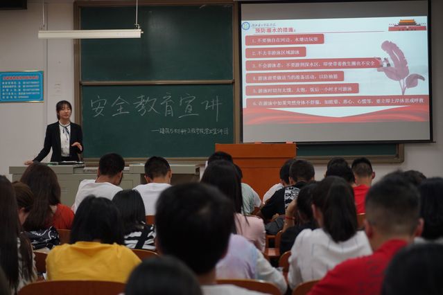 本网讯(通讯员 龚国成 张齐林 李珂昕)6月11日中午,建筑与材料工程学院在6号实验楼301、302、102教室同时开展“三防”安全教育专题宣讲会。此次宣讲会由宣讲团团长邓重阳、副团长沈红成、宣讲团成员、院团委学生副书记尤欣雅主讲,建筑与材料工程学院2017级全体学生参加。