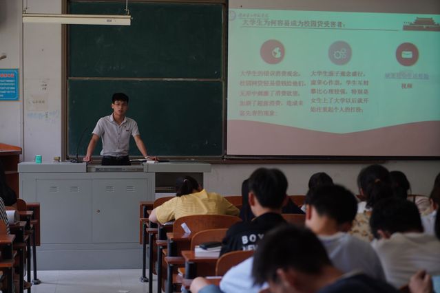 宣讲团成员结合具体案例、生动的漫画及视频展播方式,从防溺水、防不良网贷、防传销三个方面进行安全教育宣讲,让同学们深刻认识我们应当如何更好的保护生命安全,遇到安全问题时如何采取防范措施。邓重阳结合当代大学生行为特点、生活习惯、心理活动等方面,对大学生陷入网贷、传销的原因深入分析,倡导大学生应端正心态、理性消费。尤欣雅详细分析了同学们身边可能存在的安全隐患,并列举了预防措施。