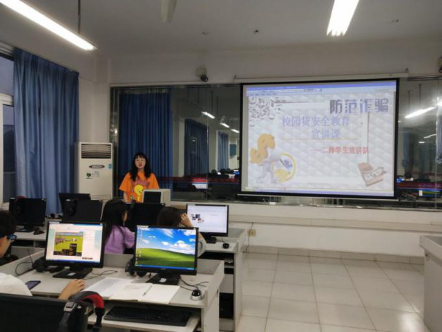 针对“防网贷”,讲师谢佳言通过网贷的类型及骗取手段入手,并结合大学生网贷案例向同学们阐述网贷的危害并告诫学生们不要轻易上当受骗,擦亮眼睛。