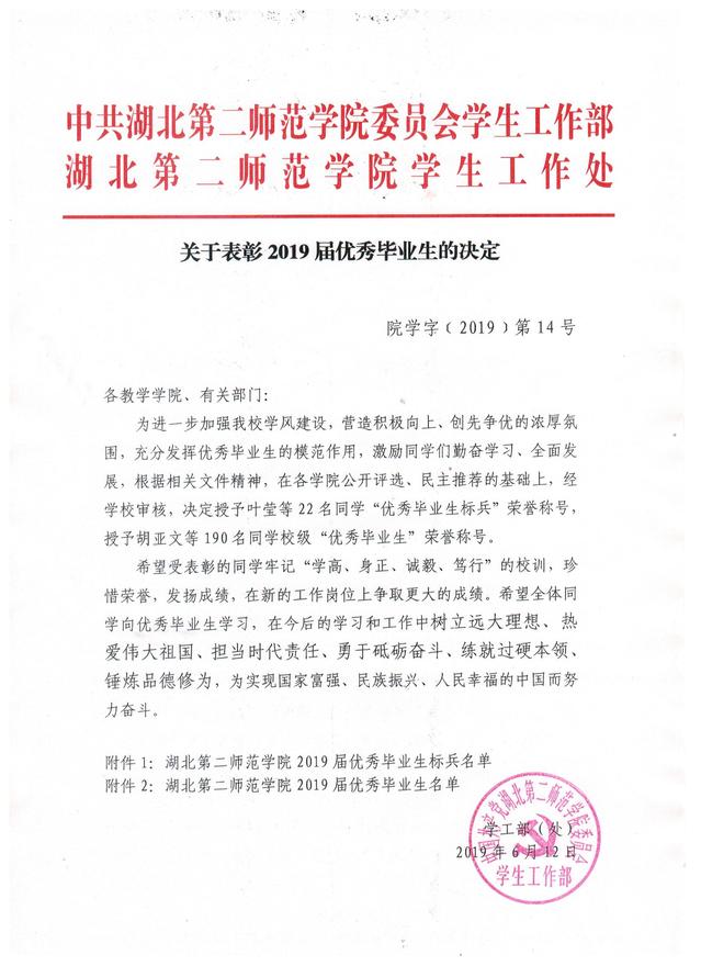 附件2:湖北第二师范学院2019届优秀毕业生名单.xlsx