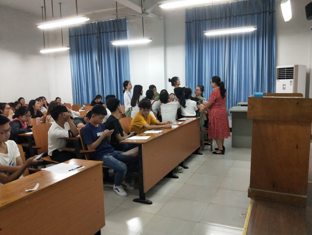 首先,每位同学填写压力量表了解自己的压力程度,并根据得分诊断压力情况。阮老师表示,现阶段大学生压力主要来源于学习、生活,特别是临近期末考试,很多同学出现不同程度的考试焦虑。阮老师通过询问同学们的作息时间发现,在复习周造成同学们压力过大的另一因素是作息不规律。经过引导,同学们渐渐敞开心扉,诉说近期烦恼和压力。阮老师表示:人需要压力,有压力才会有动力,压力既有正面作用也有负面作用。针对过大压力,阮老师教授“解压26式”,引导大家科学管理和释放压力。随后,阮老师带领大家体验了“信任背摔”游戏,引导同学们放松压力、增进信任。