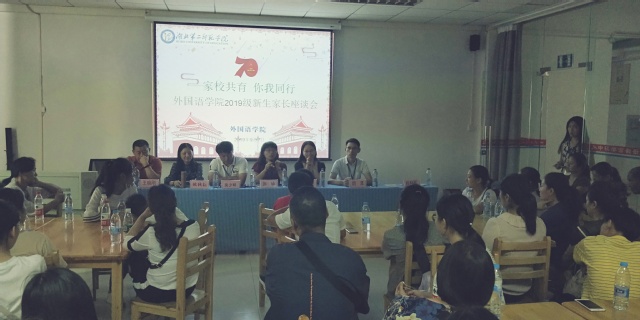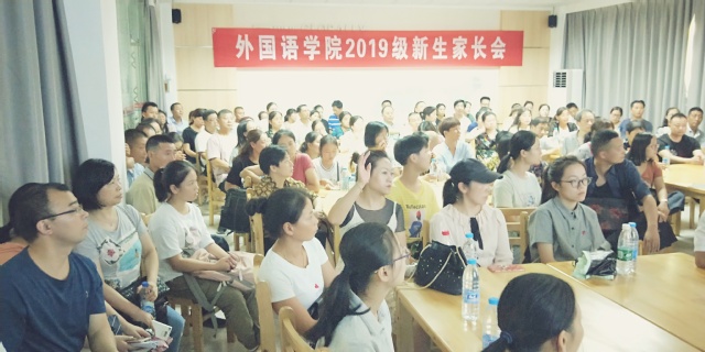本网讯(通讯员 张胤熙)9月7日下午2点,外国语学院在二楼多功能教室举办“家校共育,你我同行”2019级新生家长会。外国语学院党总支书记彭敏、院长汪燕华、副院长欧秋耘、胡波、日语专业负责人王晓刚、学工办主任桂利军以及新生家长110多人出席会议,会议由外国语学院党总支副书记吴少明主持。