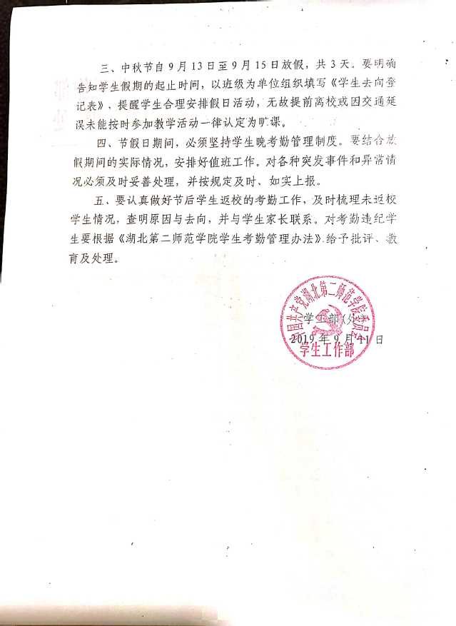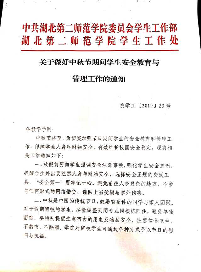 关于做好中秋节期间学生安全教育与管理工作的通知