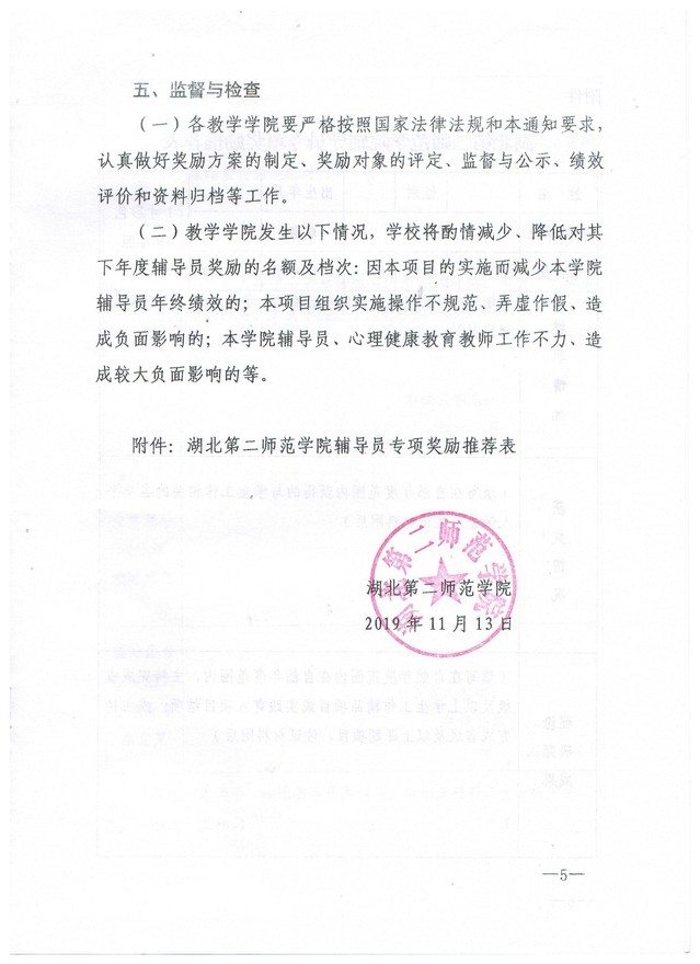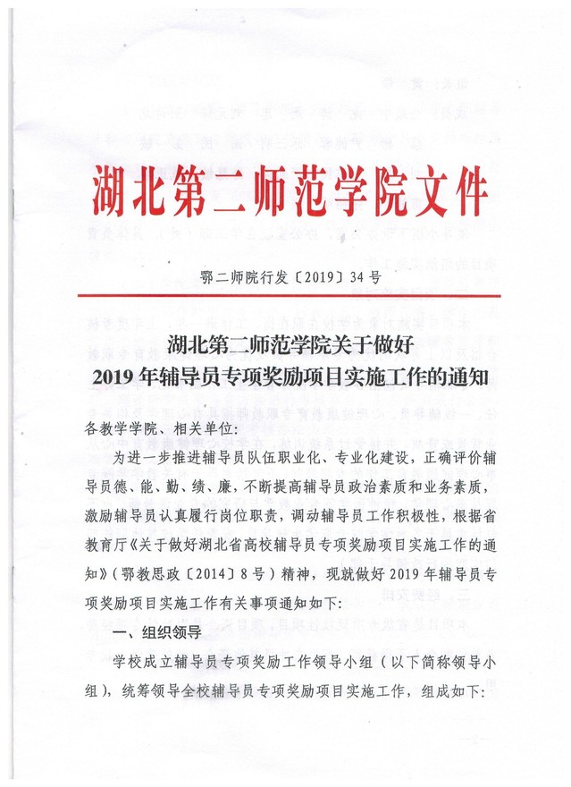 湖北第二师范学院关于做好2019年辅导员专项奖励项目实施工作的通知