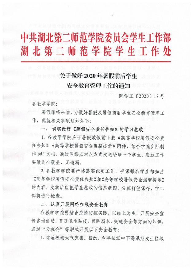 关于做好2020年暑假前后学生安全教育管理工作的通知