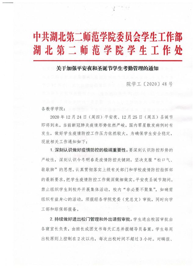 关于加强平安夜和圣诞节学生考勤管理的通知