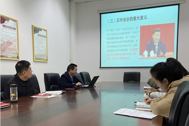 支部书记金殿中讲授了题为《全面建设现代化的政治宣言和行动纲领——学习贯彻十九届五中全会精神》的党课,从五中全会概况与《建议》的基本框架、“十三五”成就与当前形势、2035年远景目标与“十四五”主要目标、“十四五”新发展理念引领高质量的重点任务、坚持系统观念认识和落实“1高3新13项行动”等方面展开,对党课主题进行了深入讲解。(编辑 金琰)