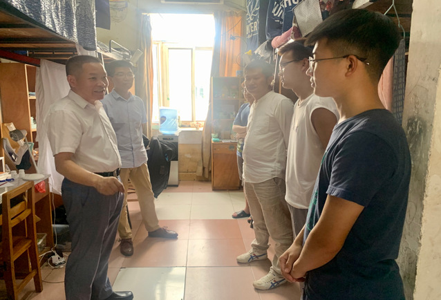 检查前,金殿中强调,要看寝室“原貌原态”,针对出现的问题要在“源头上找原因”。检查过程中,他着重检查了寝室文明公约制定和落实情况,详细了解了环境卫生、安全用电、走廊垃圾堆放等情况。