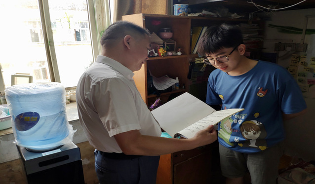 随后,金殿中突击检查了几间上课学生寝室卫生情况。在601宿舍,20级财务管理7班的饶坚同学的个人内务依旧保持着退役军人的优良作风,干净整洁,舒畅明朗,金殿中给予高度评价。同时,在饶坚的带动下,601寝室整体卫生环境优良,得到检查人员的肯定。金殿中鼓励饶坚同学,要更好的发挥带动作用,影响更多同学,促进寝室卫生环境、文明氛围的持续改善。