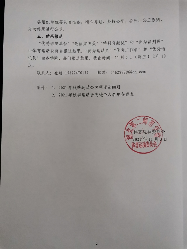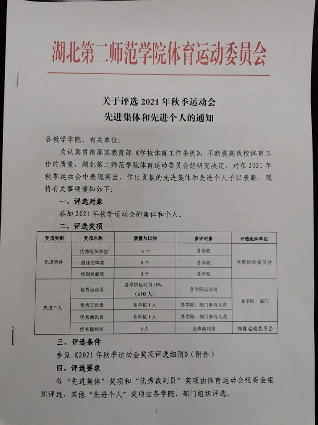 关于评选2021年秋季运动会先进集体和先进个人的通知