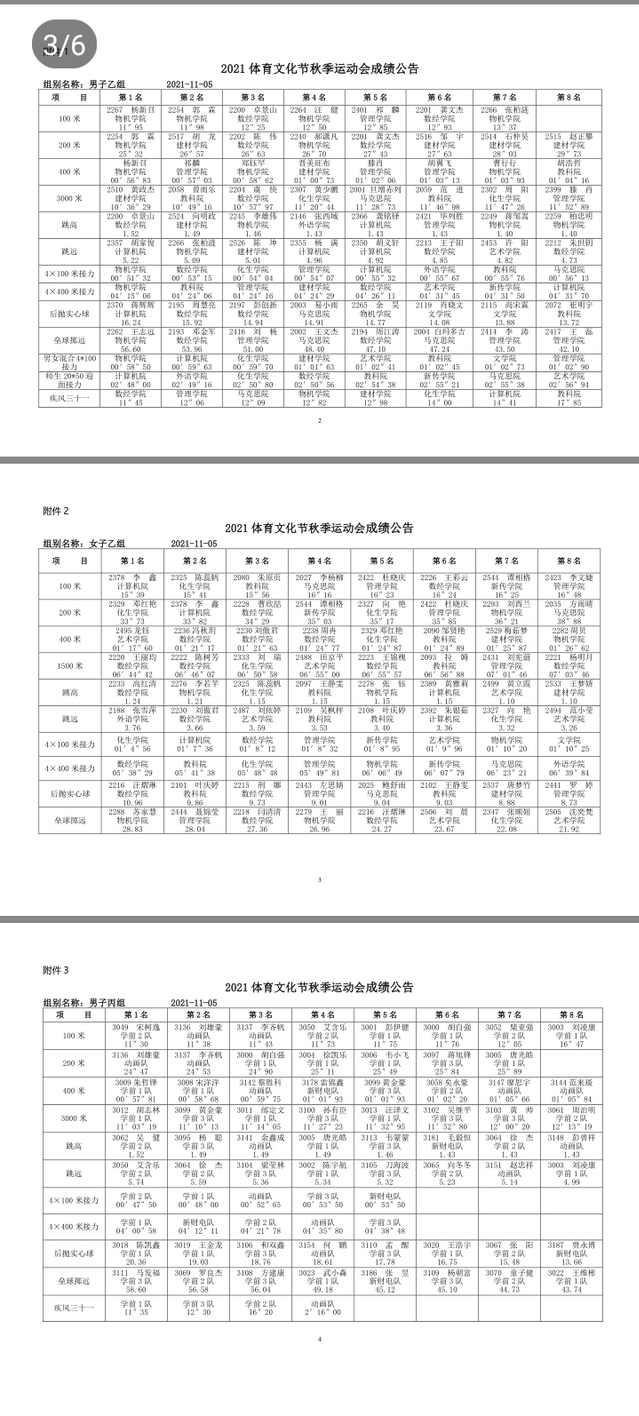 2021秋季运动会成绩通告: