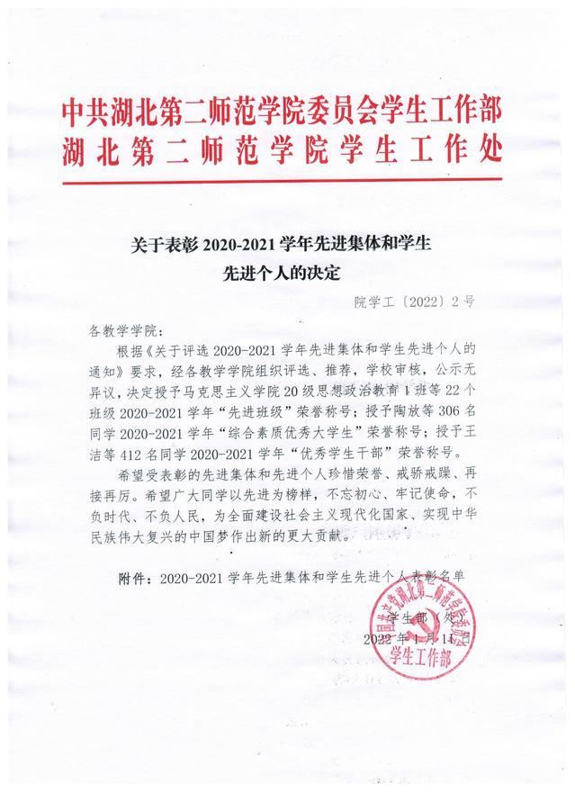关于表彰2020-2021学年先进集体和学生先进个人的决定