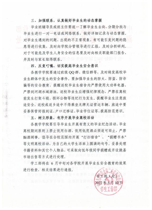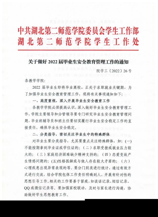 关于做好2022届毕业生安全教育管理工作的通知