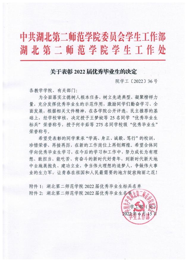 关于表彰2022届优秀毕业生的决定