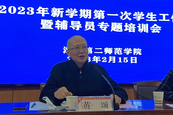 黄颂传达了湖北省教育厅关于推进“开学第一课”调度会的精神和上级工作要求,与大家共同学习了学生教育引导口径,强调“五个确保”,提出了三个工作要求,即提高认识、真抓实干、务求实效。他结合学生工作实际对全体辅导员提出了八点期望:一是把准工作定位;二是坚定工作理念;三是扎实工作作风;四是增强工作能力;五是提升综合素质;六是守牢人生底线;七是保持生活激情;八是升华精神境界。