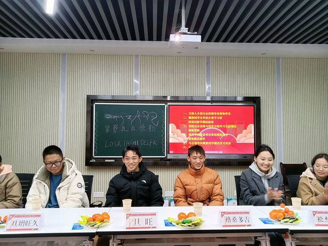 在联谊会上,同学们逐一进行自我介绍,各自分享了家乡藏族新年习俗,与老师们交流学习生活情况,表达新年期许,并对学校给予的关怀表示感谢。随后,“师友·学友行动”联系单位领导寄语藏族同学,刘儒国处长向藏族同学分享了湖北地区新年习俗,鼓励同学们珍惜学习机会,堪当师范生大任,把知识文化传播到西藏地区,同时当好促进民族交流的使者,发挥自身作用,与各民族同学加强交流,互相学习、共同进步。图书馆馆长彭敏向同学们介绍了图书馆丰富的馆藏及利于藏族同学学习的电子资源,鼓励同学们增强学习信心,多多走进图书馆,打牢专业基础知识,拓宽专业视角,做好学业规划。