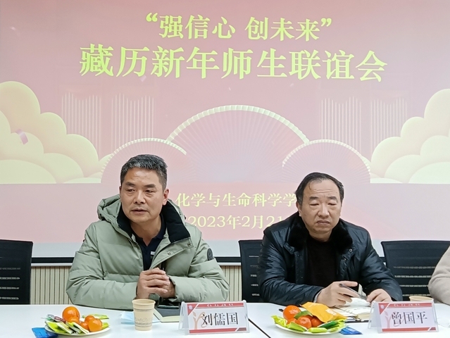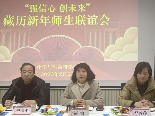本网讯(通讯员 刘诗雨 张灏)2月21日,化学与生命科学学院在多功能会议室举办“强信心 创未来”2023年藏历新年师生联谊会,活动由学院分党委书记严莉萍主持。学院“师友·学友行动”联系单位招生就业处处长刘儒国、图书馆馆长彭敏及学院领导班子、辅导员与全院10名藏族同学欢聚一堂,共话藏历新年,共叙师生情谊,展望新学期学习生活。