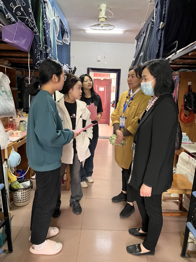 学院29位班主任、辅导员深入学生宿舍,与每位同学深入交流,了解各位同学五一去向,并叮嘱大家“人走断电”,外出注意交通安全、饮食安全等,警惕电信诈骗,及时向家人报平安,按时返校。学院给每间宿舍发放了安全倡议书及“五一”劳动节假期安全提示。走访过程中,班主任们对宿舍的各角落进行了仔细检查,从是否使用违规电器,环境是否整洁,物品摆放是否整齐等方面对每间宿舍进行了考评。从走访的情况来看,大部分宿舍摆放有序、干净整洁、明亮宽敞,但部分寝室存在物品过多、摆放杂乱等现象。班主任们对宿舍整体状况较好的寝室提出表扬,对存在不足的寝室提出整改意见,希望同学们在日常生活中养成良好的生活习惯,促进全方位成长。