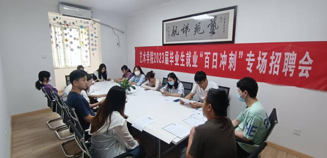 本网讯(通讯员 席雨婷 宦忠虎)为深入推进毕业生就业工作,艺术学院于5月30日在“一站式”学生社区服务驿站西十120室举行2023届毕业生“百日冲刺”专场招聘会。武汉艺笔一画艺术文化传媒有限公司创始人向道维、武汉市行一琴行第十七直营店店店长吴承蓬一同走进学生社区服务驿站分享创业经验,并进行现场招聘。学院学工办主任宦忠虎、毕业班辅导员聂刚刚、骆夏君及12名23届未就业毕业生参加招聘会。