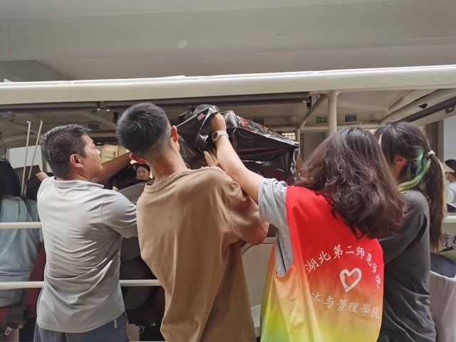本网讯(通讯员 席中刚 谭芳 江俊豪)6月28日-29日,经济与管理学院(以下简称经管学院)150余名师生志愿者助力国际经济与贸易专业近200多名学生完成宿舍搬迁工作,后勤保障部、学生工作部、保卫部组织校园车辆来回运送近2000余件行李。
