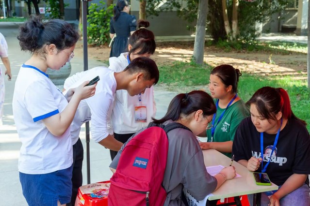 本院团学骨干在报到点为新生及家长提供咨询服务,为其答疑解惑,办理入学手续。同时本院也为想要合影留念的家长提供摄影服务,让每一位新生倍感温暖和亲切。