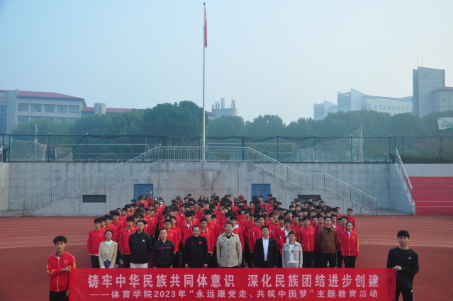 为深入学习贯彻党的二十大精神,深刻理解习近平新时代中国特色社会主义思想特别是习近平总书记关于加强和改进民族工作的重要思想和关于教育强国的重要讲话精神,10月30日上午,体育学院于综合田径场隆重举行2023年“铸牢中华民族共同体意识,深化民族团结进步创建”国旗下的讲话主题教育活动。出席本次主题教育活动的有体育学院党总支书记张绍明、院长郭敏、党总支副书记镇方松、副院长尹开宁,体育学院教师代表、学生党员、入党积极分子及2023级全体学生参加活动。本次活动由学生党支部书记何思琪主持。