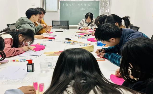 本网讯(通讯员 姚颖)为进一步优化“一站式”学生社区综合管理模式,发挥学生社区育人功能,营造育人文化,促进学生德智体美劳全面发展,11月23日16时,数学与统计学院在中区十栋学生宿舍“一站式”学生社区举行读书文化节系列活动一之“书扇合璧,翰墨情缘”扇面书法活动。本次活动由数学与统计学院学术部副部长赵思宇、曾诗组织。2022级、2023级各班参赛选手参与本次活动。