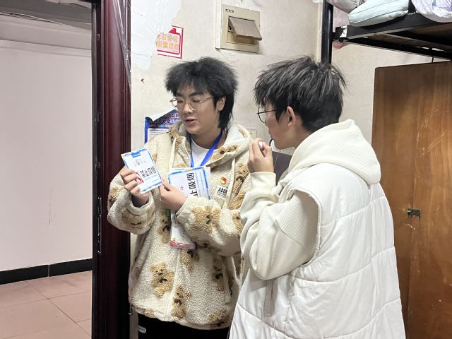 (图为学生党员在西区4栋学生宿舍开展禁烟宣传)